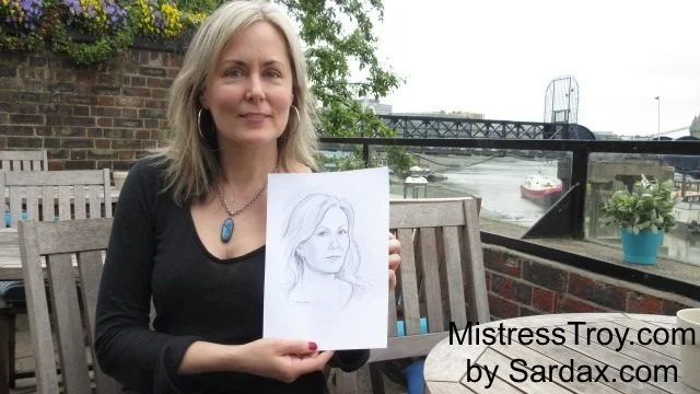 During a stay in London in May 2017, I had the pleasure of meeting the FemDom artist Sardax in person. We enjoyed a lovely lunch and conversation overlooking the River Thames. After lunch he honored Me by offering to do a sketch for Me. I am pleased to present that sketch here: